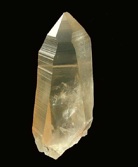 Description: This amazing and very rare beauty has many stunning properties. It has the most superb even colour with top notch trademark 'barcode' striations (as found with the best Lemurians). It is a growth interference crystal, has small light-bearing rainbow inclusions and is an Isis (Goddess) crystal. It is a completely perfect, natural specimen with no damage. It has a magical, ethereal glow to it; with perfect, uniform golden colour.  It has enormous potential for crystal healing albeit at a personal or individual level, for Earth healing, meditation (as a powerful channeling crystal) and it would also make for a very powerful centrepiece crystal in a healing centre.