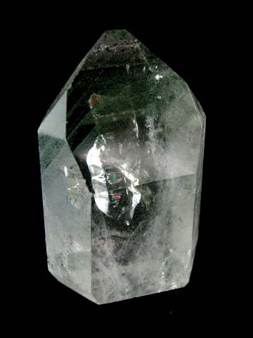 Super Clear Quartz point with multiple Green (Chlorite) Phantoms.