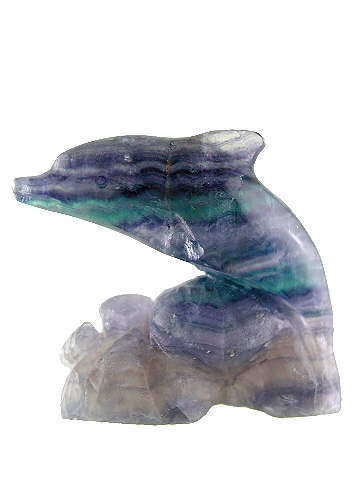 Exquisite Fluorite carving of a pair of dolphins; mother and baby (or cow and her calf). The calf is on the other side of the carving out of sight in the photo!