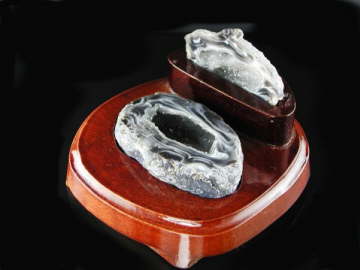 An ocho is a very small geode - in this instance made og Agate.  Ochos have been used to help assure successful outcomes with work projects, therefore placing one in your office or work environment may prove beneficial.  They also help promote feelings of freedom and innocence; lightening ones environment.  A delightful addition to any home or office!  Comes complete with wooden stand (pictured)