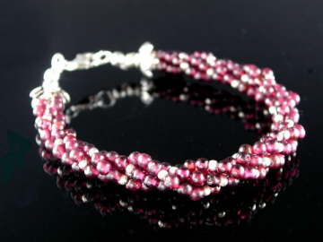Gorgeous, multi-strand twist, pink Garnet bracelet, finished with 925 sterling silver beads.