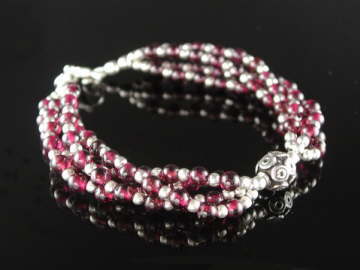 Beautiful multi-strand twist, pink Garnet bracelet, finished with a central, decorative, 925 sterling silver, bead.