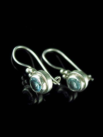 Lovely round facted Blue Topaz gemstones set in a classic Balinese-style design in 925 sterling silver.