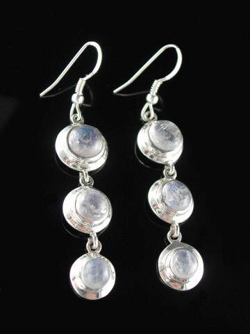 Always, a favourite, these Rainbow Moonstone earrings are in a lovely yet simple triple drop setting in 925 sterling silver.