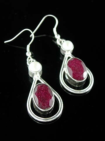 Gorgeous faceted genuine 'massive' Ruby earrings accented with real freshwater pearls in 925 sterling silver.