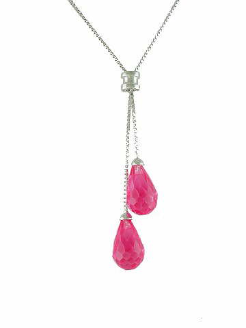Chic, classic and oh so beautiful, Siberian Pink Sapphire necklace, featuring two faceted peardrop crystals suspended from a rhodium-plated, 925 sterling silver box chain.  The colour of these gems is far, far more vibrant 'in the flesh' - highly recommended.