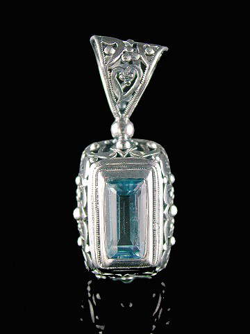 Stunning emerald-cut Blue Topaz pendant set in a 925 sterling silver filigree mount - gorgeous!