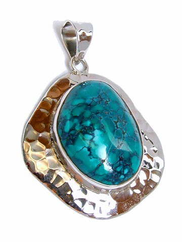 Large, top quality, Turquoise cabochon set in a stylish, contemporary, hammered design made of 925 sterling silver.