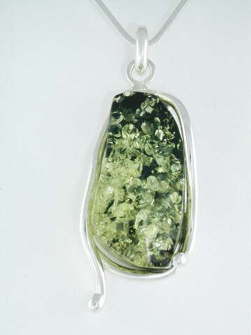 Breathtaking rare Green Amber in a contemporary design 925 sterling silver setting.