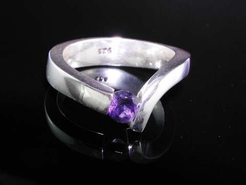 Substantial, wishbone setting for this super quality faceted Iolite stone.  We used a flash to highlight the lovely colour of the Iolite, but it appears slightly darker in daylight.  Set in 925 sterling silver.